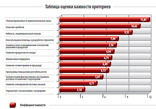 Таблица оценки важности критериев