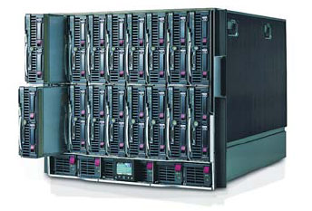 В маркетинговых материалах новая BladeSystem c-Class рекламируется как разрабатывавшаяся три года революционная архитектура лезвий, способная существенно снизить расходы на построение и эксплуатацию корпоративных центров обработки данных. Что же нового предлагает HP своим корпоративным заказчикам в этой системе? Поскольку идеология лезвий предполагает максимальное сокращение числа компонентов сервера и реализацию на уровне полки, куда устанавливаются лезвия, многих функций обычных серверов (например, сетевых подключений и удаленного администрирования), то начать представление новой BladeSystem c-Class стоит именно с полки c7000. Этот каркас высотой 10U вмещает до восьми двухпроцессорных лезвий стандартного форм-фактора либо 16 блейд-серверов уменьшенного форм-фактора (высотой 5U).