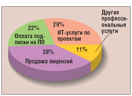Компания была образована в 1989 г. и уже более 12 лет работает как публичная корпорация. В ней трудится около 2700 человек, ее представительства находятся в 26 странах мира (в Украине есть только партнеры). В 2005-м ее доходы составили 843 млн. долл., при этом динамика годового роста бизнеса Mecrury весьма значительна — 35 и 23% соответственно в 2004 и 2005 гг. Доходы компании складываются из поставок ПО и оказания ИТ-услуг заказчикам (рис. 1). Продукты Mercury недешевы, а потому круг ее клиентов — крупные корпоративные заказчики, преимущественно из списка Fortune 1000, те, кто может себе позволить устанавливать продукты Oracle, SAP, использовать мэйнфреймы IBM и т. д.