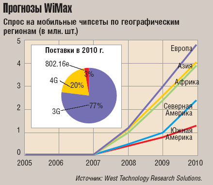 Такие сомнения имеют резон. Согласно недавнему исследованию фирмы West Technology Research Solutions, цена наборов микросхем WiMax опустится до 20 долл. не ранее 2010 г.