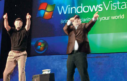 ![]() Windows Vista анонсируют старший вице-президент Microsoft Бриан Валентайн и вице-президент Кевин Джонсон |