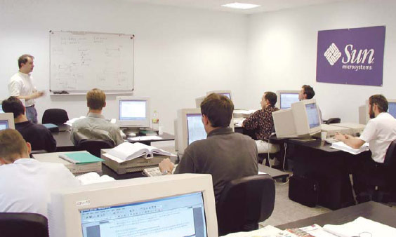 Sun Microsystems — поставщик не только оборудования, но и технологий обучения. Для нее обучение — это бизнес. 40% мирового рынка обучения ОС UNIX принадлежит этой компании. И она достигла больших успехов. Ее курсы — одни из самых качественных. Поэтому с 2000 года мы использовали авторизованные тренинги, разработанные Sun Microsystems. Кроме того, это очень зрелая компания с точки зрения поддержки. Существуют специальные центры поддержки для учебных центров, у каждого инструктора есть менеджер по знаниям, который контролирует готовность тренера к ведению новых курсов. Компания располагает мощными средствами для поддержания и совершенствования уровня квалификации тренеров, например, имеется удаленная лаборатория, где наши тренеры могут изучать новые технологии без отставания от западных коллег.