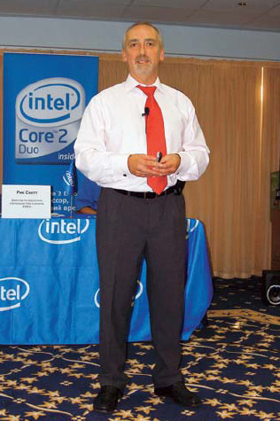 По словам г-на Скетта, основой персональных компьютеров призваны стать процессоры Intel Core 2 Duo, сочетающие энергоэффективную производительность и многозадачность. Благодаря размещению двух микпропроцессорных ядер на одном кристалле удается обеспечить параллельное выполнение вычислительных потоков. Для бизнес пользователей параллелизация дает возможность комфортно работать с офисным ПО при включенном антивирусе, брандмауэре и других средствах защиты. На домашнем ПК, оборудованном двухъядерным процессором, можно быстрее и эффективнее обрабатывать видео, статические изображения, создавать трехмерные сцены, играть с большей степенью реализма. К концу года Intel будет выпускать, в основном, двухъядерные процессоры — их доля в общем объеме составит 75%.