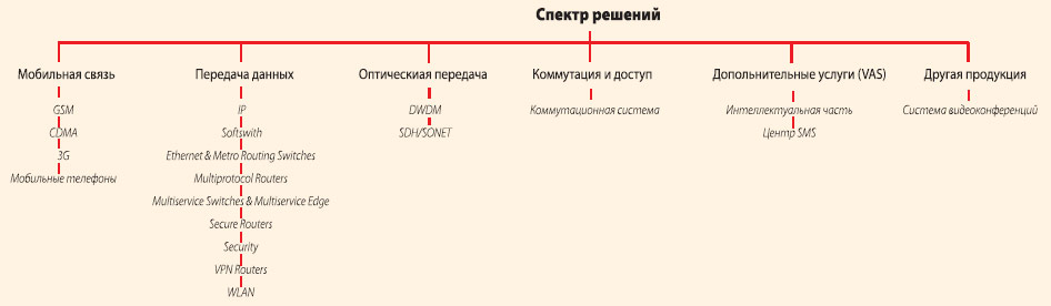 Компания разрабатывает сервисы и производит телекоммуникационное оборудование для PSTN-сетей, сетей мобильной связи (GSM/GPRS, PHS, CDMA2000 1x/1xEV-DO, UMTS/WCDMA), оптических сетей, сетей передачи данных, интеллектуальных сетей (IN) и сетей следующего поколения (NGN).