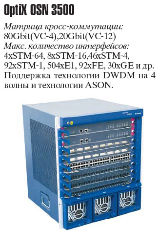 Ядро оптической сети компании “Телесистемы Украины” в городе Киеве строится на оборудовании OptiX OSN 3500. Это мультиплексоры SDH нового поколения, которые в дополнение к стандартным функциям SDH-оборудования имеют улучшенную функциональность передачи трафика Ethernet (поддерживаются такие технологии, как MPLS, RPR, CAR, QoS). Кроме того, платформа OptiX OSN 3500 поддерживает следующие стандартные интерфейсы: STM-1/64, E1/E3/T1, FE/GE, FICON/ESCON.