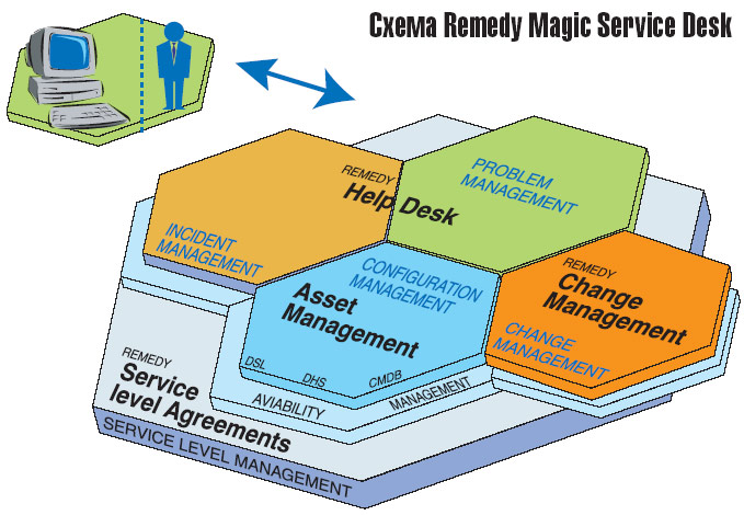 Компоненты ITIL полностью или частично используются во многих продуктах для управления ИТ-инфраструктурой, имеющихся на рынке. Один из них — Magic Service Desk компании Remedy (www.remedy.com) — предназначен для компаний с количеством персонала от 100 до 500 человек. В Magic Service Desk применены основные компоненты библиотеки ITIL (Управление инцидентами, Проблемами, Изменениями и Конфигурациями). Существует ещё 6 процессов, наряду с функцией Сервисной Службы, однако для средних компаний внедрение полномасштабной ITIL довольно дорого и не всегда оправданно.