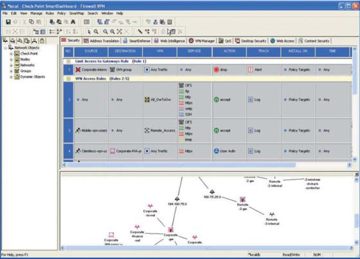 • VPN-1 SecuRemote/SecureClient — защита удалённого доступа пользователей к корпоративным ресурсам;