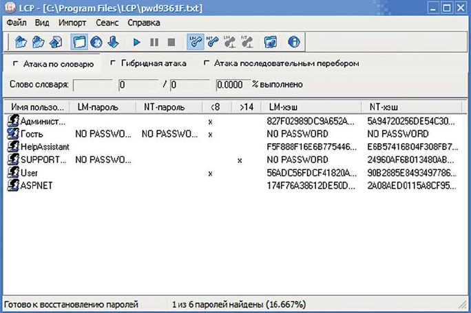 Проверка устойчивости парольной защиты ОС Windows 2000/XP/2003