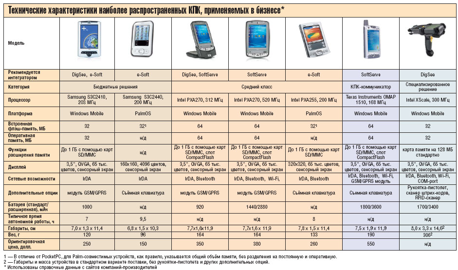 ![]() ехнические характеристики наиболее распространенных КПК, применяемых в бизнесе* |
