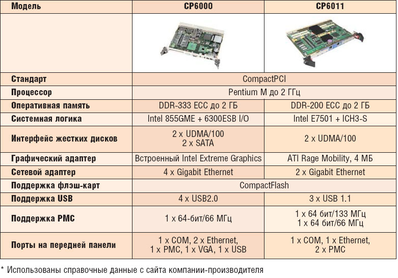 В сегменте встраиваемых многопроцессорных промышленных систем шина CompactPCI является индустриальным стандартом. Она обеспечивает высокую степень интеграции компонентов, надёжную защиту от электромагнитных полей и оптимизированную систему охлаждения, что позволяет строить на базе этой архитектуры отказоустойчивые промышленные компьютеры с высокой степенью готовности. Компания Kontron, один из ведущих производителей встраиваемых систем, предлагает свои решения, выполненные в форм-факторе CompactPCI. Наиболее мощными из них являются процессорные модули семейства СР6000.