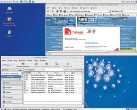 ![]() В качестве основных программ для работы в Интернете пользователям предлагаются Mozilla Firefox и Ximian Evolution |