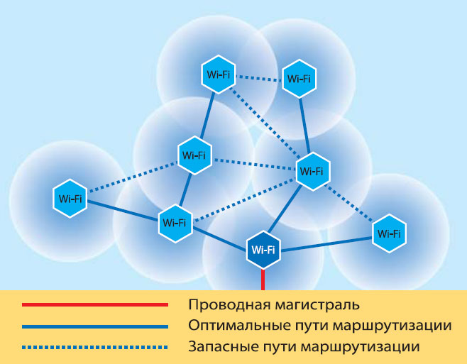 Последняя представила на рассмотрение IEEE и собственную разработку под названием Hybrid Mesh. Здесь маршрутизация может производиться либо по требованию (при этом маршруты прокладываются и поддерживаются только тогда, когда они нужны), либо с упреждением (каждый узел постоянно поддерживает маршруты ко всем возможным потребителям).