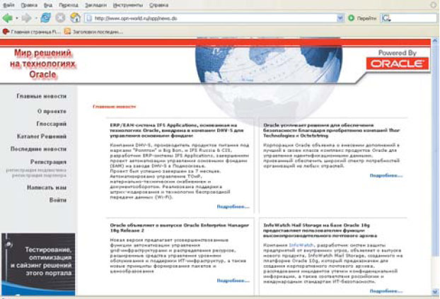 Стремясь оказать максимальную поддержку таким партнерам, московский офис Oracle создал специальный портал “Мир решений на технологиях Oracle” (www.opn-world.ru), на котором поставщики прикладных Oracle-систем смогут представлять свою продукцию, а потенциальные заказчики — знакомиться с нею и с примерами успешного внедрения.
