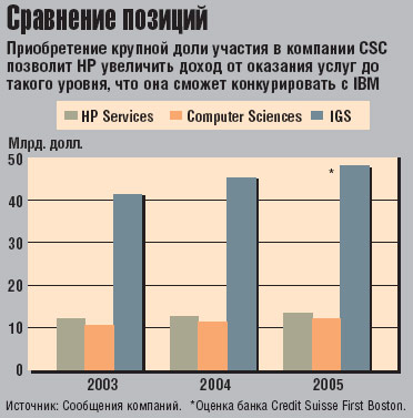 Hewlett-Packard одержала несколько крупных побед, среди которых — заключенный в 2004 г. десятигодичный контракт с Procter & Gamble стоимостью 3 млрд. долл. Но, чтобы двигаться вперед с набранной скоростью, она должна увеличить объем и спектр услуг, учитывая масштабы капиталовложений и количество сотрудников, необходимых для выполнения столь масштабных сделок.