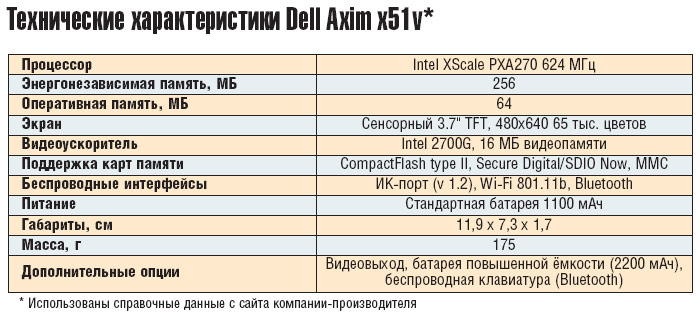 Несмотря на уже состоявшийся анонс новой версии популярной мобильной платформы Windows Mobile 5.0, на рынке представлено пока ещё не слишком много карманных компьютеров PocketPC на её базе. Лишь немногие hi-end-модели обладают самым мощным в линейке процессором Intel XScale PXA270 с тактовой частотой 624 МГц и экраном c VGA-разрешением. Если добавить сюда ещё и графический видеоускоритель Intel 2700G и беспрецедентный для карманных ПК объём встроенной флэш-памяти, то получится новый карманный компьютер от Dell — модель Axim x51v.