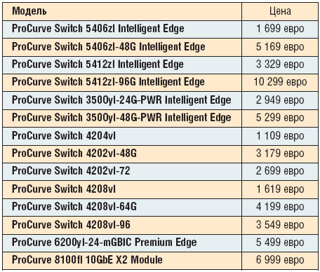 Семейство коммутаторов ProCurve 4200 ориентировано на пользователей, которым достаточно базовой функциональности. Следовательно, стоимость одного порта у ProCurve 4200 ощутимо ниже по сравнению с ProCurve 5400/3500 — 38 евро за порт Fast Ethernet и 66 евро за Gigabit Ethernet.