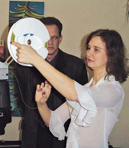 ![]() Анна Фелик-Рухтина демонстрирует оборудование Ericsson для задувки оптики |