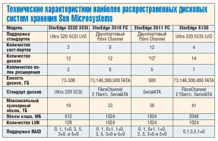 ![]() Технические характеристики наиболее распространенных дисковых систем хранения Sun Microsystems |