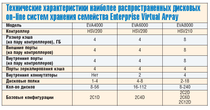 ![]() Технические характеристики наиболее распространенных дисковых on-line систем хранения семейства Enterprise Virtual Array |