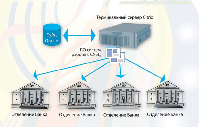 Все операции выполняются на терминальном сервере, что приводит к уменьшению нагрузки на каналы связи, упрощает настройку клиентских рабочих станций и повышает уровень безопасности. Такой подход предоставляет возможности для легкого и отвечающего требованиям безопасности и надежности тиражирования средств для организации рабочих мест пользователей в новых филиалах и отделениях банка.