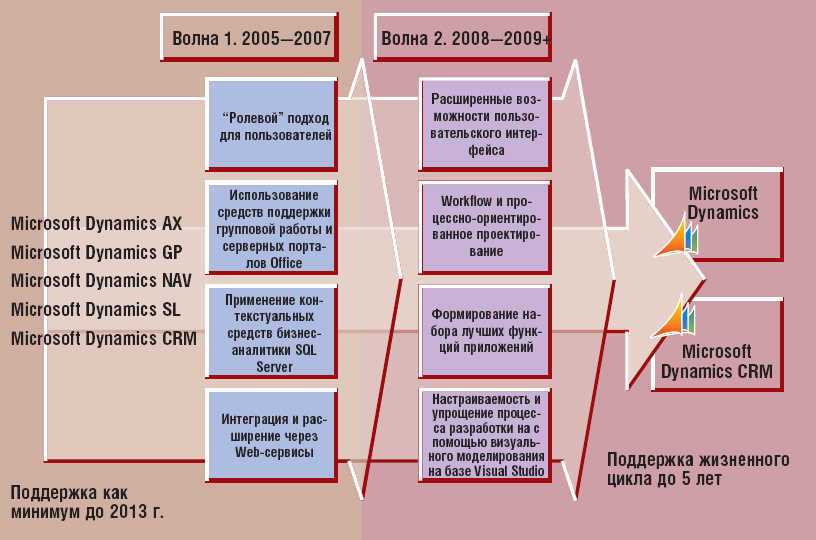 ![]() Рис. 1. Дорожная карта продуктов Microsoft Dynamics |