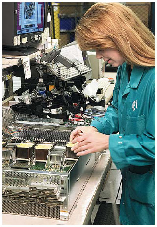 ![]() Специалист компонует микросхемы одной из 20 систем Columbia, каждая из которых содержит по 512 процессоров Intel Itanium 2 |