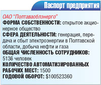 Украинская энергетическая компания ОАО “Полтаваоблэнерго” — естественный монополист, лицензионной деятельностью которого является генерация, передача и сбыт электроэнергии в Полтавской области. Предприятие существует более 30 лет, в состав ОАО “Полтаваоблэнерго” входят 29 филиалов и Кременчугская ТЭЦ, которая обеспечивает 25% потребностей электроэнергии в Полтавской области. Общая численность работающих — около 5200 человек. В распоряжении компании находятся свыше 49000 км линий электропередач, которые расположены на территории 29000 км2. Рынок сбыта компании — промышленные, непромышленные и бытовые потребители энергии. Количество потребителей электроэнергии по области насчитывает свыше 700 тысяч, в том числе бытовых абонентов — свыше 650 тысяч.