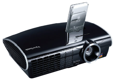 Из всей представленной линейки, пожалуй, проектор ViewSonic PJ258D ViewDock наиболее близок к обычным устройствам для домашнего применения. Однако он сочетает не только стильный дизайн и технологию ViewDock для просматра изображений и видео напрямую с популярного мультимедийного плеера iPod, но и профессиональные возможности. Проектор оснащен композитным, S-Video, компонентным и D-Sub видеовходами. При массе 1,8 кг эта модель обеспечивает световой поток в 2000 лм и контрастность 2000:1. Проектор PJ258D поддерживает форматы HDTV (720p, 1080i).