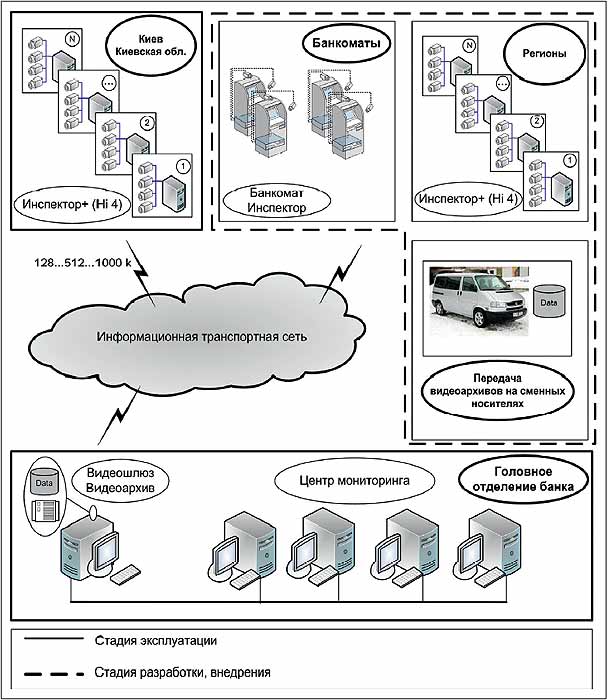Сегодня в “Правэкс-Банке” проводится испытание технологии, позволяющей доставлять видеоархивы не только по каналам связи, но и с использованием съемных носителей большой емкости  — это необходимо для мониторинга объектов, на которых нет возможности организовать канал связи с достаточной пропускной способностью или когда построение такого канала нецелесообразно. Некоторые удаленные объекты оборудуются дополнительными видеокамерами, причем благодаря проработке решения на этапе проектирования внедрение дополнительного оборудования для видеосерверов не требуется.