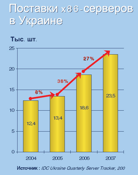 Несмотря на политические коллизии 2007 год ознаменовался активным развитием всех сегментов серверного рынка. По данным международной аналитической компании IDC в первой половине 2007 года в наиболее массовом сегменте условно обозначаемых серверов архитектуры х86 зафиксирован рост 36,5%. Общий объем поставок составил 10,3 тысячи x86-систем.