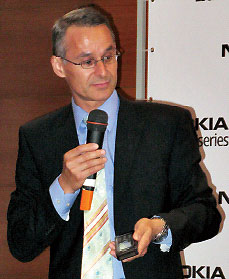 Франсуа Борнибю демонстрирует возможности Intellisync Mobile Suite на флагманской модели смартфона E-серии Nokia E90
