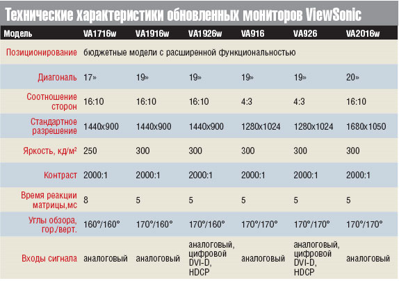 ![]() Технические характеристики обновленных мониторов ViewSonic |