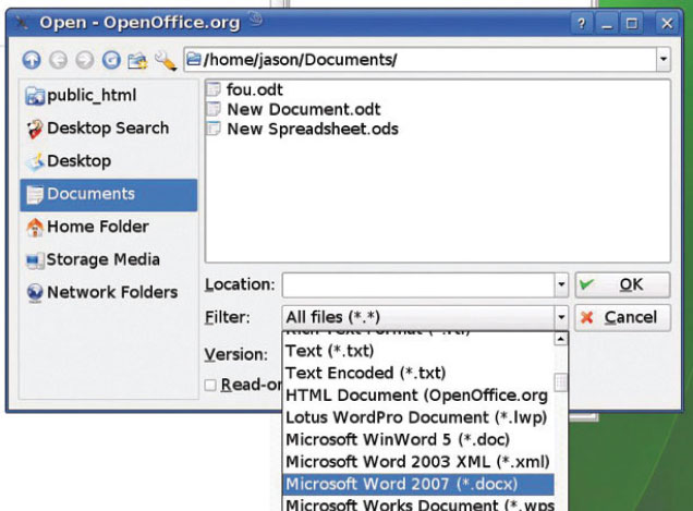 ![]() OpenOffice.org в комплектах поставки OpenSUSE и Ubuntu поддерживает формат Microsoft OOXML (Office Open XML). Аналогичный пакет в составе Fedora такой возможности не имеет |