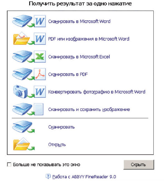 Программа ABBYY FineReader 9.0 официально сертифицирована для устройств и программного обеспечения Windows Vista. Гарантирована совместимость программы с дополнительными функциями ОС Microsoft Windows Vista.