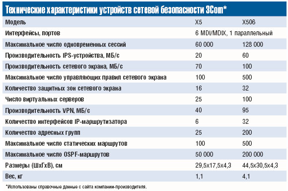 ![]() Технические характеристики устройств сетевой безопасности 3Com* |