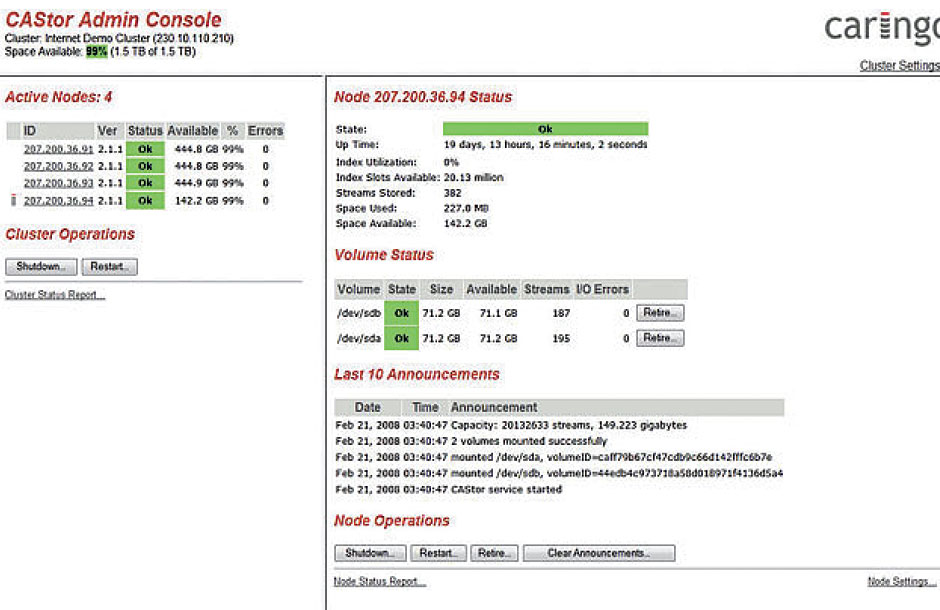Фирменная архитектура ввода-вывода для систем хранения CAStor компании Caringo обеспечивает высокую производительность не только при обработке мелких, средних и больших файлов (включая сообщения электронной почты, документы и изображения), но и мультимедийного контента.