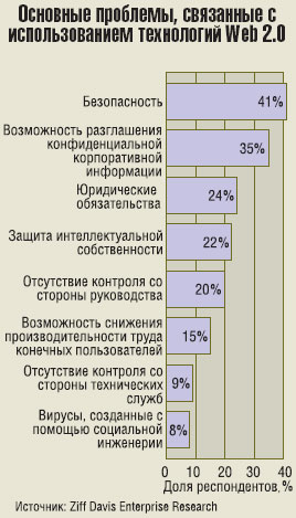 По словам 20% респондентов, они озабочены отсутствием средств управления многими приложениями Web 2.0, а 9% — отсутствием технического контроля.