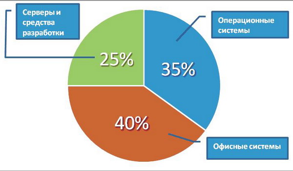 В общей структуре продаж продуктов Microsoft в Украине операционные системы составили 35% доходов, офисные системы – 40%, и серверные решения – 25%. «Среди 40 продуктовых линеек самыми быстрорастущими оказались решение по информационной безопасности Microsoft Forefront и средство управления ИТ Microsoft System Center. А это значит, что, невзирая на кризис, крупные украинские компании строят системную ИТ-инфраструктуру», – сказал директор по маркетингу и операционному управлению «Майкрософт Украина» Яцек Маслински.