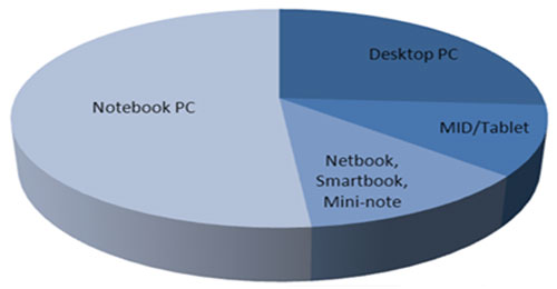 Несмотря на продолжающиеся неопределенности в экономике, спрос на мобильные вычислительные средства продолжает увеличиваться именно в связи с их мобильностью, а также в связи с появлением новых, привлекательных форм-факторов. По прогнозу аналитиков компании In-Stat, этот сегмент рынка ПК, включающий планшетные ПК, мини-ноутбуки (нетбуки и смартбуки) и ноутбуки, до 2014 г. будет развиваться со среднегодовыми темпами 19.1% и в конце рассматриваемого периода достигнет 400 млн шт.