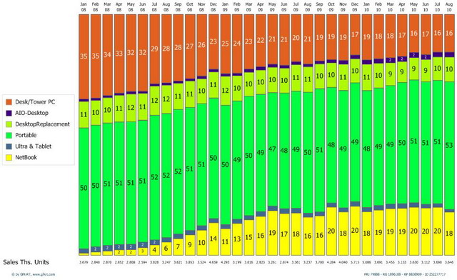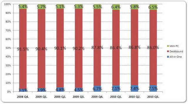 По мнению аналитиков, потребительский спрос на рынке настольных компьютеров все больше смещается в сторону неттопов и устройств класса All-in-One, при этом доля ПК с традиционным форм-фактором неуклонно снижается. Так, по данным Gartner, доля неттопов выросла с 5,4% в 2008 году до 6,5% в 3-м квартале 2010 года.