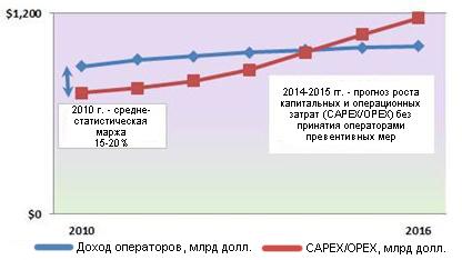 С одной стороны — наблюдается рост насыщения рынка и падение среднего дохода на абонента (ARPU), а с другой — увеличение стоимости управления и обработки трафика данных плюс рост стоимости магистральных каналов из-за взрывного роста трафика данных.