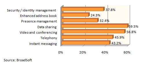 Согласно результатам опроса, почти 60% операторов считают наиболее важными для себя три сервиса: UC, RCS и совместную работу с данными. Подавляющее большинство респондентов — 92% — сообщили, что намерены в первую очередь использовать LTE-технологию для предоставления корпоративным пользователям услуг UC (Unified Communications). При этом 65% операторов уже предоставляют UC-сервисы корпоративным пользователям, у 24% провайдеров они в ближайших планах, и только 11% не намерены ориентироваться на UC-услуги для предприятий (см. рис. 1).