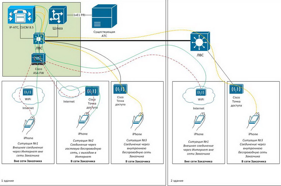 На момент внедрения нового сервиса в организации уже была определенная базовая ИТ-инфраструктура. Во всех офисных зданиях предприятия развернута сеть Wi-Fi. Кроме того, в ведомстве использовали мультисервисные сети и IP-телефонию на базе коммуникационного оборудования Cisco.