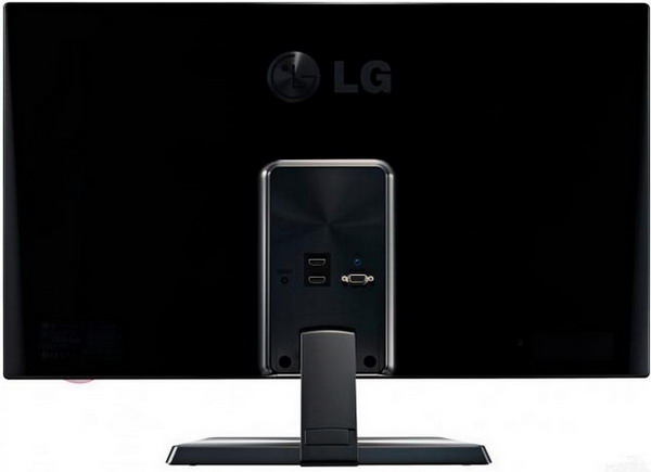 На задней панели LG IPS7, выполненной из глянцевого пластика, размещены гнездо питания 12В, два HDMI-порта, VGA-порт (D-Sub) и выход для наушников. Здесь нет порта DVI, однако он и не особо нужен, поскольку при разрешении 1080p его отсутствие не является критичным (в отличие от мониторов более высокого разрешения 1440p).