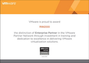 Партнерские отношения двух компаний начались в 2007 году, когда RIM2000 получила статус первого уровня — Registered Partner, вместе с регистрацией на портале VMware Partner Central и правом продаж минимального набора продуктов производителя. Второй уровень, Professional Partner, дал предприятию возможность продавать любые программные разработки VMware. Третий уровень, Enterprise Partner, подразумевает наличие в штате компании сертифицированных специалистов VMware по технике внедрения решений и продажам, подтверждает компетенцию, опыт и растущую динамику сотрудничества между партнерами. Статусом VMware Enterprise Partner владеют всего 14 отечественных компаний.