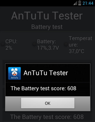 MultiPhone 5430 поставляется с батареей емкостью 2000 мА-ч, однако благодаря небольшому экрану и экономному чипсету ее хватает надолго. По результатам тестирования с помощью программы AnTuTu Tester устройство получило 608 баллов и это достаточно хороший результат. Поэтому за экономичность расходования батарей продукт однозначно получает высокую оценку. Правда, в процессе тестирования, в режиме высокой нагрузки на процессор задняя крышка ощутимо нагревалась.