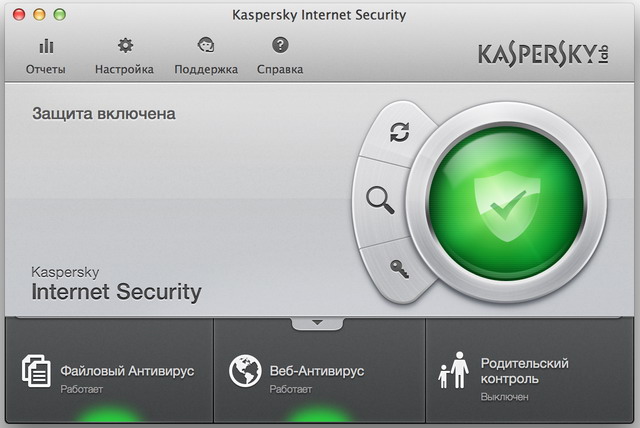 Главное окно версии программы Kaspersky Internet Security для Mac OS