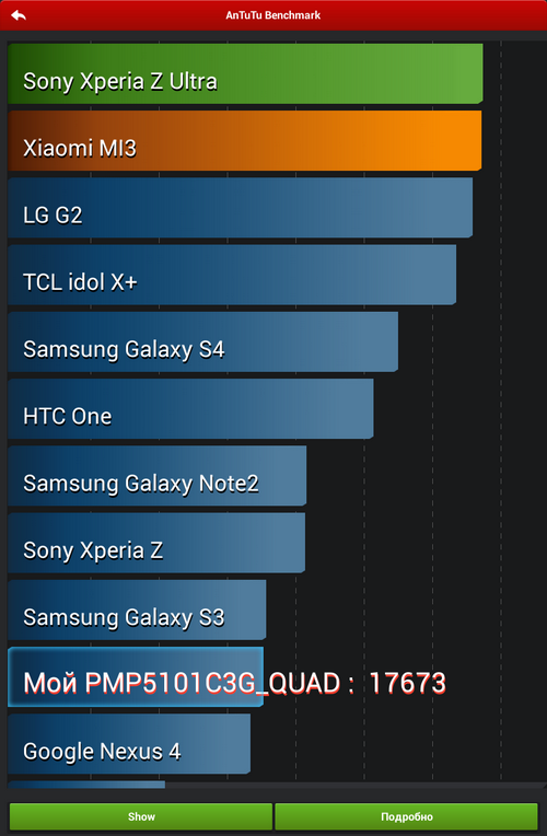 Размер внутренней памяти |