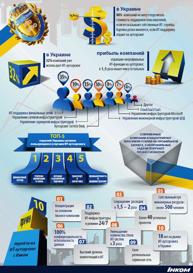 Однако ИТ-аутсорсинг в финансовых компаниях не может не развиваться, и в первую очередь главным драйвером этого процесса является стремление банков к сокращению издержек. Такая потребность существует и постоянно растет, особенно с развитием рынка различных платежных сервисов. Дополнительным существенным условием является финансовый или политический кризис — как фактор, требующий критического сокращения затрат – именно то, что мы видим сейчас в Украине.