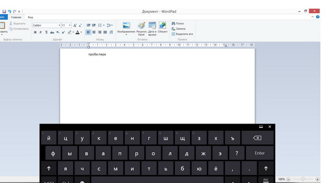В режиме планшета текст можно набирать с помощью экранной клавиатуры